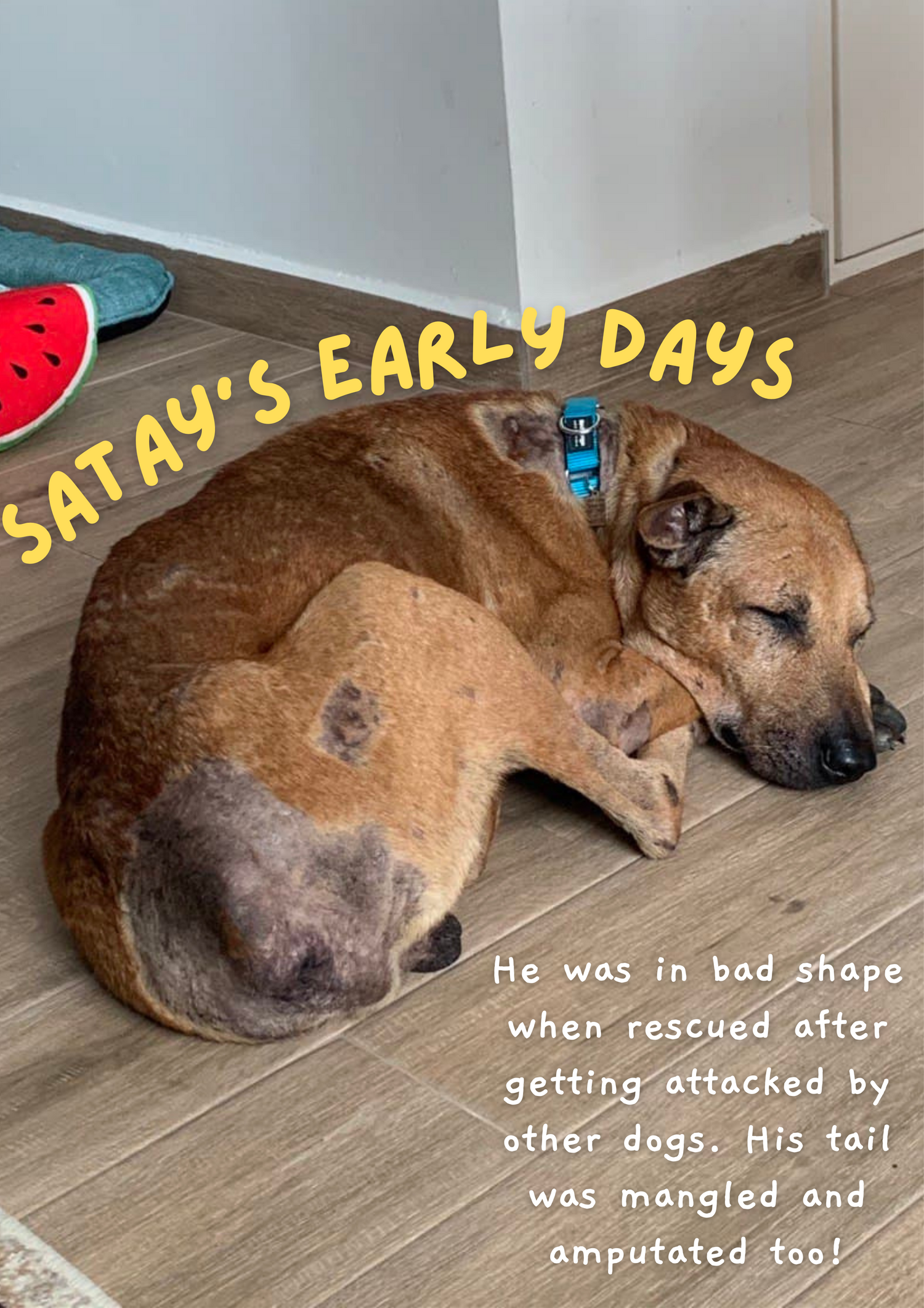 Our Dog, Satay, spent a tough decade on the streets and doesn't have the best health. He has skin problems, achy joints, and a weak bladder.